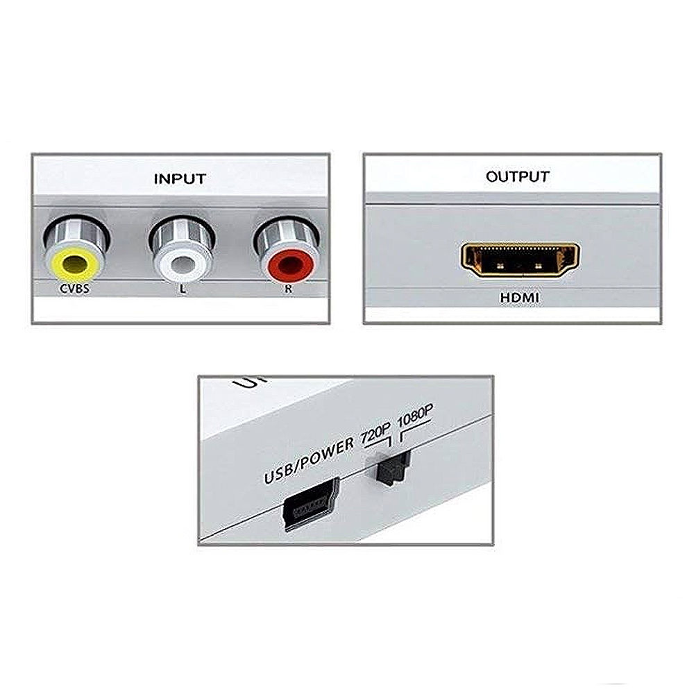 Primena: Pretvara analogni video signal u digitalni HDMI format. Koristi se za povezivanje uređaja starije generacije (VHS, DVD, video kamera, konzole kao što su PlayStation 2, Nintendo…) na HD Ready, LCD televizore.
